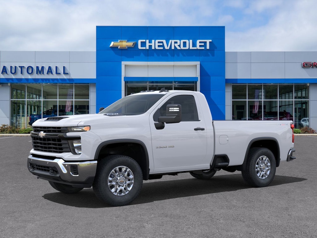 This NEW 2025 Summit White Chevrolet Silverado 3500HD Work Truck 4WD is well equipped and includes these features and benefits: Preferred Equipment Group 1WT (170 Amp Alternator, 2-Speed Electronic Shift Transfer Case, 3.5 Diagonal Monochromatic Display DIC, Black Front Bumper, Black Mirror Caps, Black Rear Bumper, Bluetooth® For Phone, Chevrolet Connected Access Capable, Compass Located In Instrument Cluster, HD Rear Vision Camera, Locking Tailgate, Manual Tailgate Function w/No EZ Lift, Manual Tilt-Wheel Steering Column, OnStar Services Capable, Power Door Locks, Power Front Windows w/Driver Express Up/Down, Push Button Start, Remote Keyless Entry, Rubberized-Vinyl Floor Covering, Solar Absorbing Tinted Glass, Standard Tailgate, Steering Wheel Mounted Electronic Cruise Control, and Wi-Fi Hotspot Capable), Snow Plow Prep/Camper Package (220 Amp Alternator), Suspension Package, WT Convenience Package (Deep-Tinted Glass, Electric Rear-Window Defogger, and EZ Lift Power Lock & Release Tailgate), WT Safety Package (Lane Change Alert w/Side Blind Zone Alert, Rear Chrome Bumper, Rear Cross Traffic Alert, and Ultrasonic Front & Rear Park Assist), 10-Speed Automatic, 4WD, Black Cloth, 120-Volt Bed Mounted Power Outlet, 120-Volt Interior Power Outlet, 2 Speakers, 2-Speaker Audio System Feature, 3.73 Rear Axle Ratio, 4-Way Manual Driver Seat Adjuster, 4-Way Manual Passenger Seat Adjuster, 4-Wheel Disc Brakes, ABS brakes, Air Conditioning, AM/FM radio, Apple CarPlay/Android Auto, Auto High-beam Headlights, Auto-Dimming Inside Rear-View Mirror, Brake assist, Chevytec Spray-On Black Bedliner, Compass, Delay-off headlights, Driver door bin, Dual front impact airbags, Dual front side impact airbags, Durabed Pickup Bed, Electronic Stability Control, Front 40/20/40 Split-Bench Seats w/Lockable Storage, Front anti-roll bar, Front Center Armrest w/Storage, Front Chrome Bumper, Front License Plate Kit, Front reading lights, Front wheel independent suspension, Fully automatic headlights, Heated door mirrors, Heavy-Duty 80 Amp-Hr Battery, Illuminated entry, LED Cargo Area Lighting, Low tire pressure warning, Occupant sensing airbag, Outside temperature display, Overhead airbag, Overhead console, Panic alarm, Passenger door bin, Passenger vanity mirror, Power door mirrors, Power steering, Power windows, Power-Adjustable Outside Mirrors, Premium audio system: Chevrolet Infotainment 3, Radio: Chevrolet Infotainment 3 System, Rear step bumper, Remote keyless entry, Speed control, Tachometer, Tilt steering wheel, Traction control, Trip computer, Turn signal indicator mirrors, Upfitter Switch Kit (5), Variably intermittent wipers, Vinyl Seat Trim, and Voltmeter.