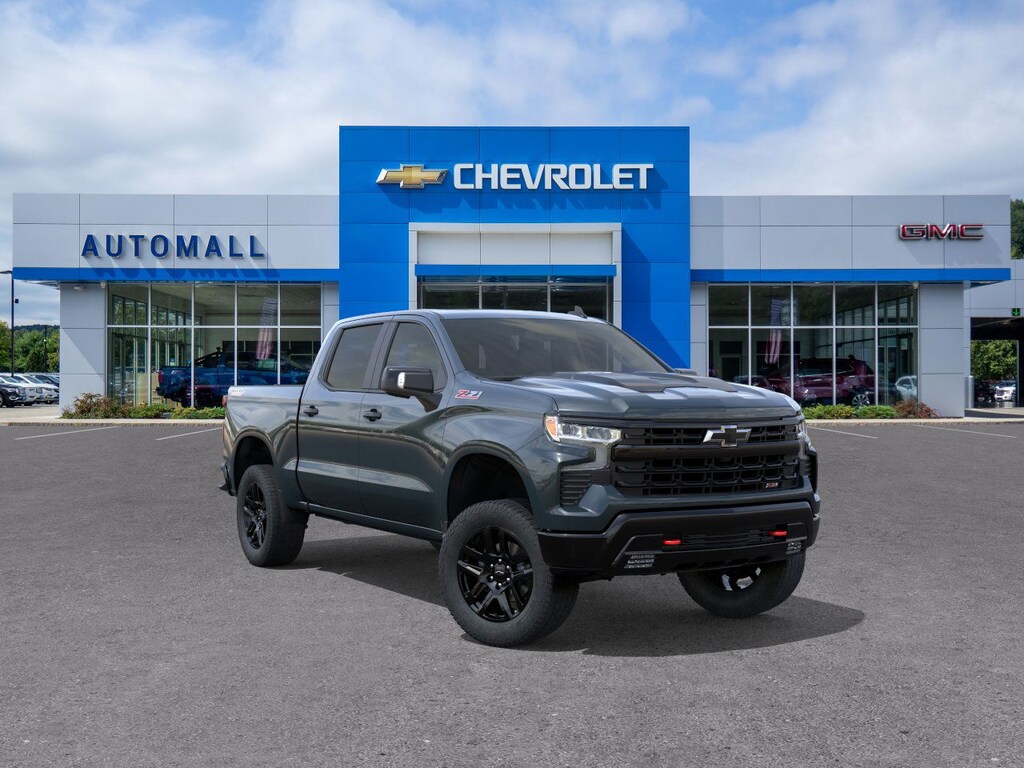 This NEW 2026 Gray Chevrolet Silverado 1500 LT Trail Boss 4WD is well equipped and includes these features and benefits: Convenience Package (10-Way Power Driver Seat w/Lumbar, 120-Volt Bed Mounted Power Outlet, 120-Volt Interior Power Outlet, Dual Rear USB Ports (Charge Only), Dual-Zone Automatic Climate Control, Electric Rear-Window Defogger, Heated Driver & Front Outboard Passenger Seats, Heated Steering Wheel, Keyless Open & Start, LED Cargo Area Lighting, Manual Tilt/Telescoping Steering Column, Remote Vehicle Starter System, Theft Deterrent System (Unauthorized Entry), and Wrapped Steering Wheel), Convenience Package II (Hitch Guidance w/Hitch View, In-Vehicle Trailering System App, Power Sliding Rear Window w/Rear Defogger, Premium Bose 7-Speaker Sound System, and Universal Home Remote), Leather Package (Leather-Appointed Front Seat Trim), LT Trail Boss Premium Package (Power Tailgate), Protection Package (Chevytec Spray-On Black Bedliner and Rear Wheelhouse Liners), Safety Package (HD Surround Vision, Perimeter Lighting, Rear Cross Traffic Braking, Rear Pedestrian Alert, Trailer Camera Provisions, Trailer Side Blind Zone Alert, and Ultrasonic Front & Rear Park Assist), Suspension Package (Heavy-Duty Air Filter and Hill Descent Control), Trailering Package (Hitch Guidance), Up-Level Rear Seat w/Storage Package, 10-Speed Automatic, 4WD, Jet Black Leather, 12.3 Multicolor Reconfigurable Digital Display, 2 USB Data Ports, 220 Amp Alternator, 4-Wheel Disc Brakes, 40/20/40 Front Split-Bench Seat, 6 Speakers, 6-Speaker Audio System, ABS brakes, Adaptive Cruise Control, Air Conditioning, All-Weather Floor Liner (LPO) (AAK), Alloy wheels, AM/FM radio: SiriusXM with 360L, Apple CarPlay/Android Auto, Auto High-beam Headlights, Auto-Locking Rear Differential, Automatic Emergency Braking, Automatic temperature control, Bluetooth® For Phone, Brake assist, Cloth Seat Trim, Color-Keyed Carpeting Floor Covering, Compass, Deep-Tinted Glass, Delay-off headlights, Driver door bin, Driver vanity mirror, Dual front impact airbags, Dual front side impact airbags, Electronic Cruise Control, Electronic Stability Control, Electronic Transmission Range Selector Shifter, Emergency communication system: OnStar, EZ Lift Power Lock & Release Tailgate, Floor Mounted Center Console, Following Distance Indicator, Forward Collision Alert, Front anti-roll bar, Front Bucket Seats, Front Center Armrest w/Storage, Front dual zone A/C, Front fog lights, Front LED Fog Lamps, Front Pedestrian Braking, Front reading lights, Front wheel independent suspension, Fully automatic headlights, HD Rear Vision Camera, Heated door mirrors, Heated front seats, Heated Power-Adjustable Outside Mirrors, Heated steering wheel, High Gloss Black Mirror Caps, Illuminated entry, Inside Rear-View Mirror w/Tilt, Integrated Trailer Brake Controller, IntelliBeam Automatic High Beam On/Off, Lane Keep Assist w/Lane Departure Warning, Low tire pressure warning, Occupant sensing airbag, OnStar Services Capable, Outside temperature display, Overhead airbag, Overhead console, Panic alarm, Passenger door bin, Passenger vanity mirror, Performance Red Recovery Hooks, Power door mirrors, Power driver seat, Power Front Windows w/Driver Express Up/Down, Power Front Windows w/Passenger Express Down, Power Rear Windows w/Express Down, Power steering, Power Sunroof, Power windows, Premium audio system: Chevrolet Infotainment 3 Premium, Radio data system, Radio: Chevrolet Infotainment 3 Premium System, Rear 60/40 Folding Bench Seat (Folds Up), Rear reading lights, Rear step bumper, Rear window defroster, Remote keyless entry, Security system, Single Outlet Exhaust, SiriusXM w/360L Trial Subscription, Speed control, Speed-sensing steering, Split folding rear seat, Standard Tailgate, Steering Wheel Audio Controls, Steering