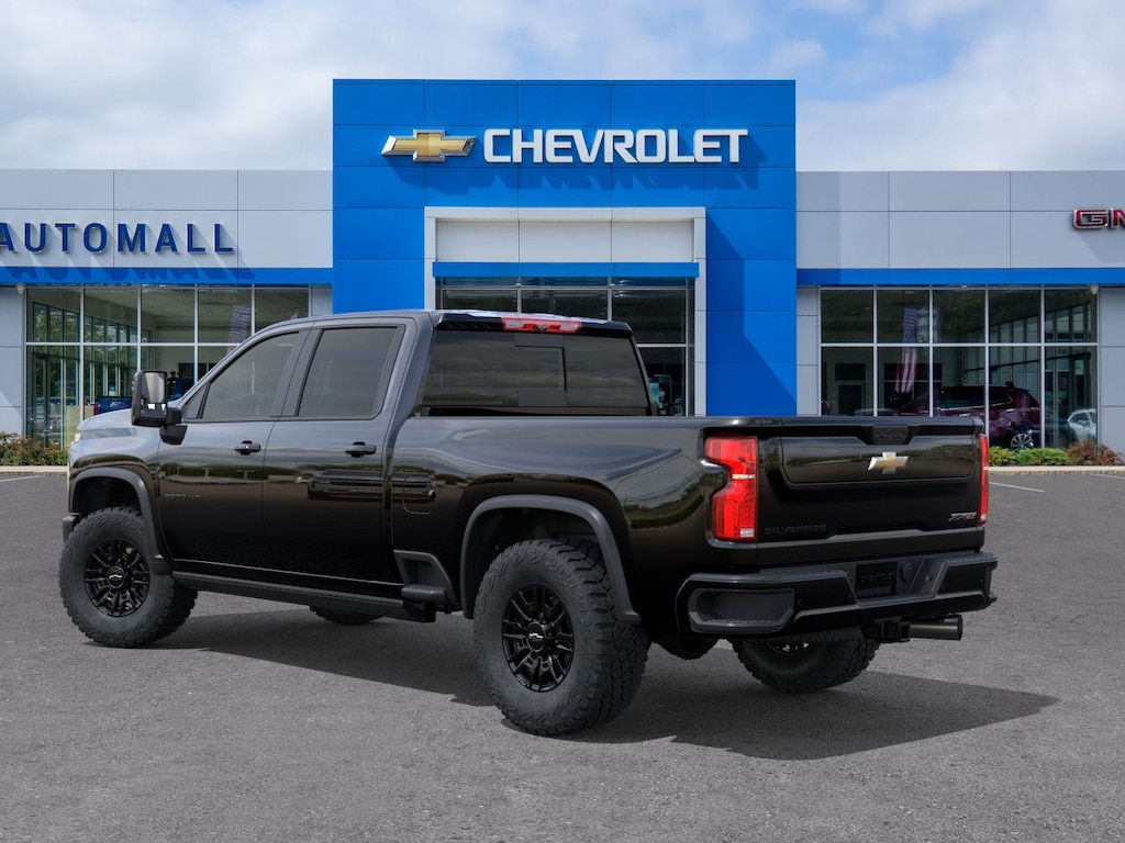 This NEW 2026 Black Chevrolet Silverado 2500HD ZR2 4WD is well equipped and includes these features and benefits: Dark Essentials Package (Black Name Plates), Gooseneck/5th Wheel Prep Package (Black Chevytec Spray-on Bedliner), Preferred Equipment Group 3LT (120-Volt Bed Mounted Power Outlet, 120-Volt Interior Power Outlet, 170 Amp Alternator, All-Weather Floor Liners, Bed View Camera with Two Trailer Camera Provisions, Bluetooth® For Phone, Chevrolet Connected Access Capable, Color-Keyed Carpeting Floor Covering, Compass, Deep-Tinted Glass, Durabed Pickup Bed, Electric Rear-Window Defogger, EZ Lift Power Lock and Release Tailgate, Front Bucket Seats, Front LED Fog Lamps, Front Rain-Sensing Wipers, Heated 2nd Row Outboard Seats, Heated Steering Wheel, High Gloss Black Mirror Caps, Hitch Guidance with Hitch View, in-Vehicle Trailering App System, Keyless Open and Start, LED Cargo Area Lighting, LED Smoked Amber Roof Marker Lamps, Manual Tilt and Telescoping Steering Column, Multi-Flex Tailgate, OnStar Services Capable, Perforated Leather Seat Trim, Power Door Locks, Power Front Windows with Driver Express Up/Down, Power Front Windows with Passenger Express Up/Down, Power Rear Windows with Express Down, Power Sliding Rear Window with Defogger, Push Button Start, Rear Cross Traffic Alert, Rear Wheelhouse Liners, Remote Vehicle Starter System, SiriusXM with 360L Trial Subscription, Steering Wheel Audio Controls, Trailer Camera Provisions, Ultrasonic Front and Rear Park Assist, Unauthorized Entry Theft-Deterrent System, Universal Home Remote, Wi-Fi Hotspot Capable, Wireless Charging, Wireless Phone Projection, and Wrapped Steering Wheel), Snow Plow Prep/Camper Package (220 Amp Alternator), Technology Package (15 Diagonal Multicolor Head-Up Display and Rear Camera Mirror), Up-Level Rear Seat with Storage Package, ZR2 Suspension Package, 10-Speed Automatic, 4WD, Jet Black/Graystone Leather, 10-Way Power Driver Seat Adjuster with Lumbar, 10-Way Power Passenger Seat Adjuster with Lumbar, 4-Wheel Disc Brakes, 7 Speakers, 720 Cold-Cranking Amps Heavy-Duty Battery, ABS brakes, Air Conditioning, Alloy wheels, AM/FM radio: SiriusXM with 360L, Apple CarPlay/Android Auto, Auto High-beam Headlights, Auto-dimming door mirrors, Auto-dimming Rear-View mirror, Automatic temperature control, BOSE Premium 7-Speaker Sound System, Brake assist, Bumpers: chrome, Delay-off headlights, Driver door bin, Driver Memory, Driver vanity mirror, Dual 220-Amp Primary/170-Amp Auxiliary Alternators, Dual front impact airbags, Dual front side impact airbags, Electronic Stability Control, Emergency communication system: OnStar, Engine Block Heater, Exhaust Brake, Floor-Mounted Center Console, Front anti-roll bar, Front Center Armrest, Front dual zone A/C, Front fog lights, Front License Plate Kit, Front reading lights, Front wheel independent suspension, Fully automatic headlights, Garage door transmitter, Heads-Up Display, Heated door mirrors, Heated Driver and Front Outboard Passenger Seating, Heated front seats, Heated rear seats, Heated steering wheel, High Idle Switch, Illuminated entry, Low tire pressure warning, Memory seat, Occupant sensing airbag, Outside temperature display, Overhead airbag, Overhead console, Panic alarm, Passenger door bin, Passenger vanity mirror, Power door mirrors, Power driver seat, Power passenger seat, Power steering, Power Sunroof, Power windows, Power-Retractable Black Assist Steps, Premium audio system: Chevrolet Infotainment 3 Premium, Radio: Chevrolet Infotainment 3 Premium System, Rain sensing wipers, Rear reading lights, Rear seat center armrest, Rear step bumper, Rear window defroster, Remote keyless entry, Security system, Speed control, Speed-sensing steering, Split folding rear seat, Steering wheel mounted audio controls,