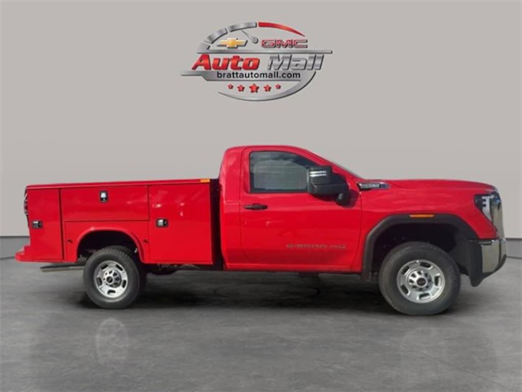 This NEW 2025 Cardinal Red GMC Sierra 2500HD Pro 4WD is well equipped and includes these features and benefits: Convenience Package (Deep-Tinted Glass, Electric Rear-Window Defogger, EZ Lift Power Lock & Release Tailgate, and LED Cargo Area Lighting), Preferred Equipment Group 1SA (2 Charge/Data USB Ports, 2-Speed Electronic Shift Transfer Case, Chrome Grille w/Flat Black Grille Insert Bars, OnStar Services Capable, Push Button Start, Remote Keyless Entry, Solar Absorbing Tinted Glass, and Wireless Phone Projection), Snow Plow Prep/Camper Package (220-Amp Alternator), Suspension Package, 10-Speed Automatic, 4WD, Black Cloth, 120-Volt Bed Mounted Power Outlet, 120-Volt Instrument Panel Power Outlet, 2 Speakers, 2-Speaker Audio System Feature, 3.73 Rear Axle Ratio, 4-Way Manual Driver Seat Adjuster, 4-Way Manual Passenger Seat Adjuster, 4-Wheel Disc Brakes, 700 Cold-Cranking Amps/70 Amp-hr Auxiliary Battery, ABS brakes, Air Conditioning, AM/FM radio, Apple CarPlay/Android Auto, Auto High-beam Headlights, Auto-Dimming Inside Rear-View Mirror, Automatic Emergency Braking, Brake assist, Buckle to Drive, Bumpers: chrome, Compass, Delay-off headlights, Driver door bin, Dual front impact airbags, Dual front side impact airbags, Electronic Stability Control, Emergency communication system: OnStar, Following Distance Indicator, Forward Collision Alert, Front 40/20/40 Split-Bench Seats, Front anti-roll bar, Front Center Armrest w/Storage, Front License Plate Kit, Front Pedestrian Braking, Front reading lights, Front wheel independent suspension, Fully automatic headlights, Heavy-Duty 80 Amp Battery, Illuminated entry, IntelliBeam Automatic High Beam On/Off, Lane Departure Warning System, LED Smoked Amber Roof Marker Lamps, Low tire pressure warning, Occupant sensing airbag, Outside temperature display, Overhead airbag, Overhead console, Panic alarm, Passenger door bin, Passenger vanity mirror, Perimeter Lighting, Pickup Box, Power steering, Power windows, Power-Adjustable Black Outside Mirrors, Radio: AM/FM w/GMC Infotainment System, Rear step bumper, Remote keyless entry, SiriusXM Trial Subscription, Speed control, Tachometer, Tilt steering wheel, Traction control, Trip computer, Upfitter Switch Kit (5), Variably intermittent wipers, Vinyl Seat Trim, Voltmeter, and Wheels: 17 Silver Painted Steel.