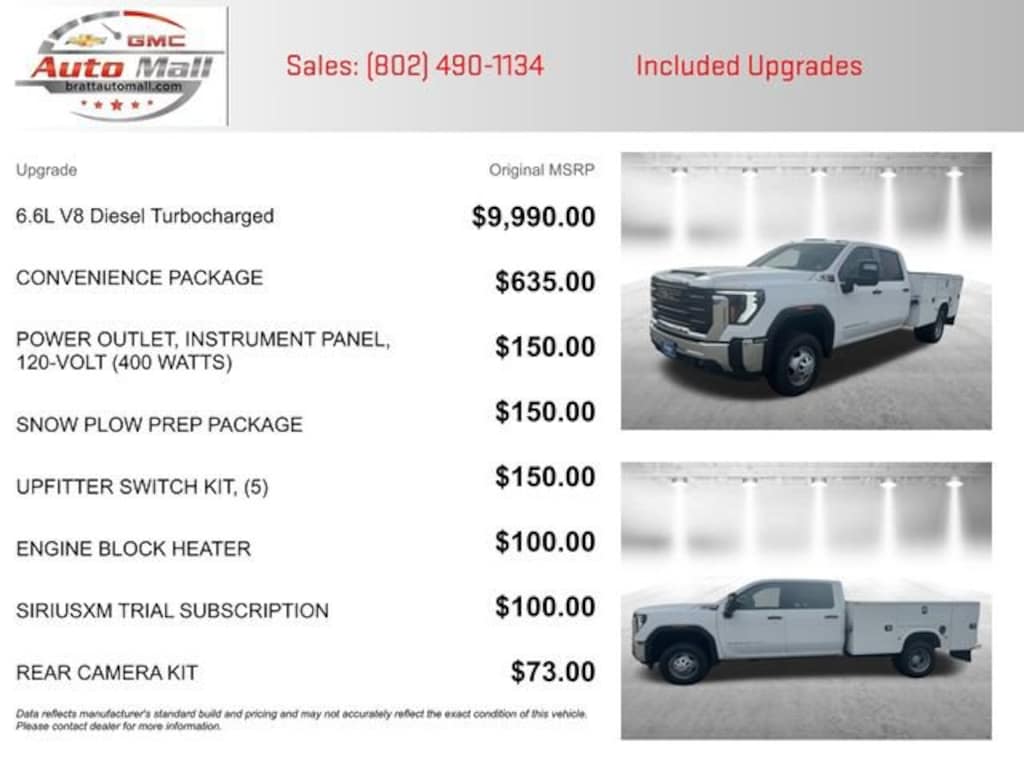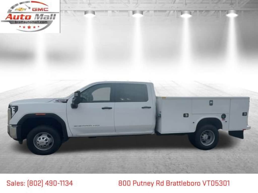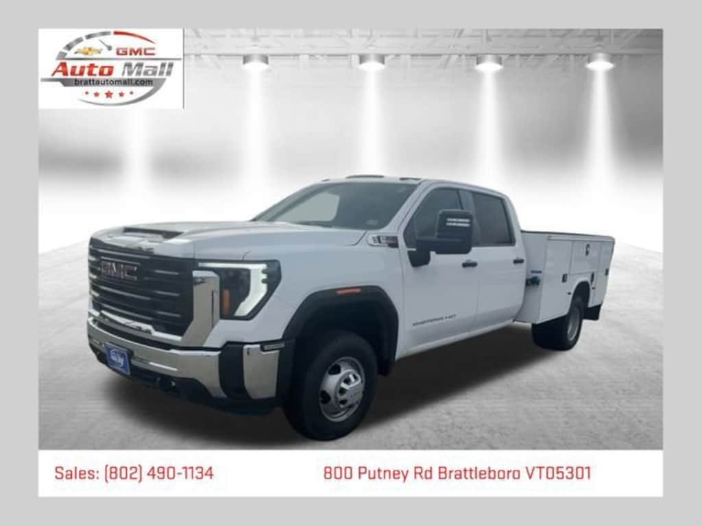 This NEW 2025 Summit White GMC Sierra 3500HD Pro 4WD is well equipped and includes these features and benefits: Convenience Package (Deep-Tinted Glass and Electric Rear-Window Defogger), Preferred Equipment Group 1SA (2-Speed Electronic Shift Transfer Case, Chrome Grille w/Flat Black Grille Insert Bars, and Solar Absorbing Tinted Glass), Snow Plow Prep Package (220 Amp Alternator), Suspension Package, 10-Speed Automatic, 4WD, Black Cloth, 17 Painted Steel Wheels, 170 Amp Alternator, 2 Charge-Only Rear USB Ports, 4-Way Manual Driver Seat Adjuster, 4-Way Manual Passenger Seat Adjuster, 4-Wheel Disc Brakes, 40 Gallon (151L) Rear Only Fuel Tank, 6 Speakers, 6-Speaker Audio System Feature, ABS brakes, Air Conditioning, AM/FM radio, Apple CarPlay/Android Auto, Auto High-beam Headlights, Auto-Dimming Inside Rear-View Mirror, Brake assist, Buckle to Drive, Bumpers: chrome, Compass, Delay-off headlights, Driver door bin, Dual front impact airbags, Dual front side impact airbags, Dual rear wheels, Electronic Stability Control, Engine Block Heater, Exhaust Brake, Following Distance Indicator, Forward Collision Alert, Front 40/20/40 Split-Bench Seat, Front anti-roll bar, Front Center Armrest w/Storage, Front License Plate Kit, Front Pedestrian Braking, Front reading lights, Front wheel independent suspension, Fully automatic headlights, Heavy-Duty 80 Amp-Hr Battery, High-Visibility Molded in Black Outside Mirrors, Illuminated entry, IntelliBeam Automatic High Beam On/Off, Lane Departure Warning System, Low tire pressure warning, Occupant sensing airbag, OnStar Services Capable, Outside temperature display, Overhead airbag, Overhead console, Panic alarm, Passenger door bin, Passenger vanity mirror, Perimeter Lighting, Power steering, Power windows, Power-Adjustable Black Outside Mirrors, Premium audio system: GMC Infotainment System, Radio: AM/FM w/GMC Infotainment System, Rear reading lights, Remote keyless entry, SiriusXM Trial Subscription, Speed control, Split folding rear seat, Tachometer, Tilt steering wheel, Traction control, Trip computer, Upfitter Switch Kit (5), Variably intermittent wipers, Vinyl Seat Trim, Voltmeter, Winter Grille Cover, and Wireless Phone Projection.
