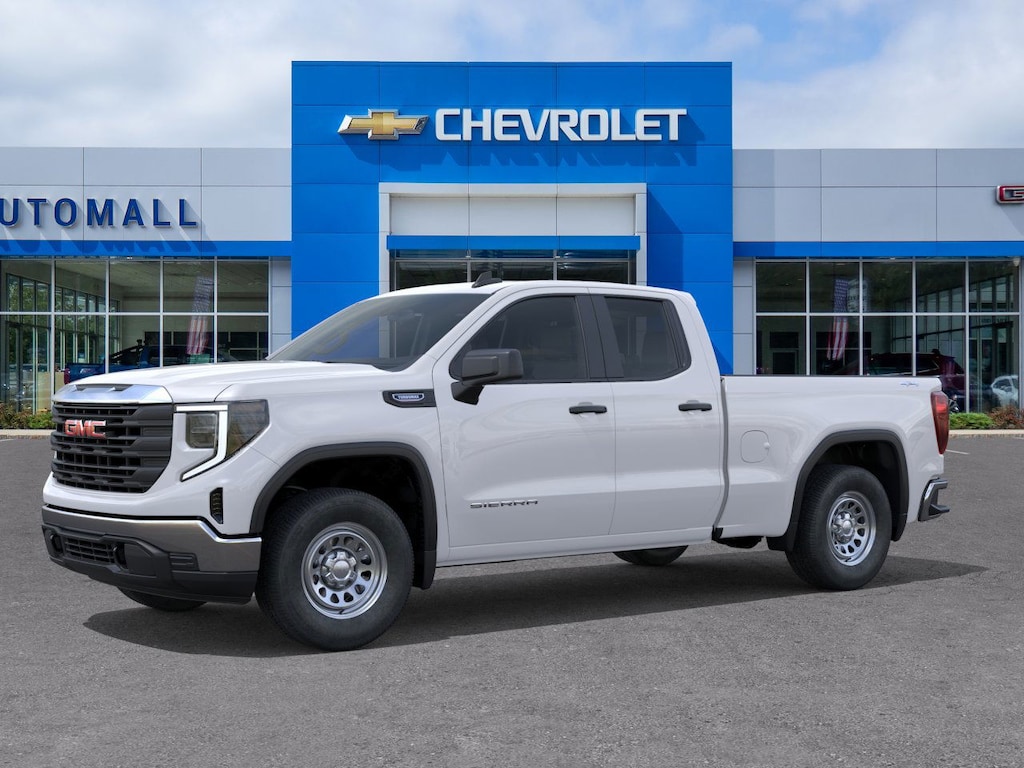 This NEW 2026 Summit White GMC Sierra 1500 Pro 4WD is well equipped and includes these features and benefits: Convenience Package (Deep-Tinted Glass, Electric Rear-Window Defogger, EZ Lift Power Lock & Release Tailgate, Heated Power-Adjustable Outside Mirrors, and LED Cargo Area Lighting), Preferred Equipment Group 1SA (2 Charge/Data USB Ports, 220 Amp Alternator, Chrome Header w/Flat Black Grille Insert Bars, Front Frame-Mounted Black Recovery Hooks, HD Rear Vision Camera, OnStar Services Capable, Power Door Locks, Power Front Windows w/Driver Express Up/Down, Power Front Windows w/Passenger Express Down, Power Rear Windows w/Express Down, Push Button Start, Remote Keyless Entry, Solar Absorbing Tinted Glass, and Wi-Fi Hotspot Capable), Pro Value Package, Standard Suspension Package, Trailering Package (Hitch Guidance), 8-Speed Automatic, 4WD, Jet Black Vinyl, 10-Way Power Driver Seat Adjuster w/Lumbar, 120-Volt Bed Mounted Power Outlet, 120-Volt Interior Power Outlet, 2 Type-C Charge-Only Rear USB Ports, 3.42 Rear Axle Ratio, 4-Way Manual Driver Seat Adjuster, 4-Way Manual Passenger Seat Adjuster, 4-Wheel Disc Brakes, 6 Speakers, 6-Speaker Audio System Feature, ABS brakes, Air Conditioning, AM/FM radio, Apple CarPlay/Android Auto, Auto High-beam Headlights, Automatic Emergency Braking, Brake assist, Buckle to Drive, Bumpers: chrome, Compass, Delay-off headlights, Driver door bin, Dual front impact airbags, Dual front side impact airbags, Electronic Stability Control, Emergency communication system: OnStar, Following Distance Indicator, Forward Collision Alert, Front 40/20/40 Split-Bench Seat, Front anti-roll bar, Front Center Armrest w/Storage, Front License Plate Kit, Front Pedestrian Braking, Front reading lights, Front wheel independent suspension, Fully automatic headlights, Illuminated entry, IntelliBeam Automatic High Beam On/Off, Lane Keep Assist w/Lane Departure Warning, Low tire pressure warning, Occupant sensing airbag, Outside temperature display, Overhead airbag, Overhead console, Panic alarm, Passenger door bin, Passenger vanity mirror, Power steering, Power windows, Radio data system, Radio: GMC Infotainment Audio System, Rear reading lights, Rear step bumper, Remote keyless entry, Speed control, Speed-sensing steering, Split folding rear seat, Tachometer, Tilt steering wheel, Traction control, Trip computer, Variably intermittent wipers, Vinyl Seat Trim, Voltmeter, Wheels: 17 x 8 Silver Painted Steel, and Wireless Apple CarPlay/Wireless Android Auto.