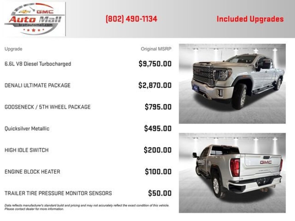 Priced below KBB Fair Purchase Price! This 2020 Quicksilver Metallic GMC Sierra 3500HD Denali 4WD is well equipped and includes these features and benefits: Denali Ultimate Package (Power Sunroof), Driver Alert Package I (Lane Change Alert w/Side Blind Zone Alert, Rear Cross Traffic Alert, and Ultrasonic Front & Rear Park Assist), Driver Alert Package II (Automatic Emergency Braking, Following Distance Indicator, Forward Collision Alert, IntelliBeam Automatic High Beam On/Off, and Lane Departure Warning System), Gooseneck/5th Wheel Package, Gooseneck/5th Wheel Prep Package, Preferred Equipment Group 5SA (12-Volt Rear Auxiliary Power Outlet, 120-Volt Bed Mounted Power Outlet, 120-Volt Instrument Panel Power Outlet, 2 USB Ports (First Row), 2 USB Ports Inside Console, 2-Speed Active Transfer Case, 2nd Row Dual USB Charge-Only Ports, 2nd Row Heated Outboard Seats, 4G LTE Wi-Fi Hotspot Capable, 6 Rectangular Chromed Tubular Assist Steps, Chrome Recovery Hooks, Compass Located In Instrument Cluster, Deep-Tinted Glass, Electric Rear-Window Defogger, Electrical Lock Control Steering Column, Floor-Mounted Center Console, GMC Connected Access Capable, HD Rear Vision Camera, Heated Driver & Front Outboard Passenger Seats, Hitch Guidance w/Hitch View, In-Vehicle Trailering System App, Integrated Trailer Brake Controller, Keyless Open & Start, LED Cargo Area Lighting, Manual Tilt-Wheel/Telescoping Steering Column, OnStar & GMC Connected Services Capable, Polished Exhaust Tip, Power Door Locks, Power Front Passenger Windows w/Express Up/Down, Power Front Windows w/Driver Express Up/Down, Power Rear Windows w/Express Down, Power Sliding Rear Window w/Defogger, ProGrade Trailering System, Rear Wheelhouse Liners, Remote Vehicle Starter System, Safety Alert Seat, Signature Denali Grille w/High Gloss Black Mesh, Spray-On Pickup Bed Liner w/Denali Logo, Steering Wheel Audio Controls, Unauthorized Entry Theft-Deterrent System, Universal Home Remote, Ventilated Driver & Front Passenger Seats, and Wireless Charging), Snow Plow Prep/Camper Package, Technology Package (Auto-Dimming Inside Rearview Mirror w/Camera, Bed View Camera, HD Surround Vision w/2 Trailer View Camera Provisions, and Multicolor 15 Diagonal Head-Up Display), X31 Off-Road Package (Hill Descent Control), 10-Speed Automatic, 4WD, Jet Black Leather, 10-Way Power Driver Seat Adjuster w/Lumbar, 10-Way Power Passenger Seat Adjuster w/Lumbar, 220 Amp Alternator, 4-Wheel Disc Brakes, 7 Speakers, ABS brakes, Air Conditioning, Alloy wheels, AM/FM radio: SiriusXM with 360L, Apple CarPlay/Android Auto, Auto High-beam Headlights, Auto-dimming door mirrors, Auto-dimming Rear-View mirror, Automatic temperature control, Bose Premium 7 Speaker Sound System, Brake assist, Bumpers: body-color, Compass, Delay-off headlights, Driver door bin, Driver Memory, Driver vanity mirror, Dual front impact airbags, Dual front side impact airbags, Electronic Stability Control, Engine Block Heater, Exhaust Brake, Forge Perforated Leather-Appointed Seat Trim, Front anti-roll bar, Front Bucket Seats, Front Center Armrest, Front dual zone A/C, Front fog lights, Front License Plate Kit, Front reading lights, Front wheel independent suspension, Fully automatic headlights, Garage door transmitter, Genuine wood console insert, Genuine wood door panel insert, HD Radio, Heated door mirrors, Heated front seats, Heated rear seats, Heated steering wheel, Heavy-Duty 80 Amp Battery, High Idle Switch, Illuminated entry, Low tire pressure warning, Memory seat, Navigation System, Occupant sensing airbag, Off-Road Suspension, Outside temperature display, Overhead airbag, Overhead console, Panic alarm, Passenger door bin, Passenger vanity mirror, Pickup Bed, Power door mirrors, Power driver seat, Power passenger seat, Power steering, Power windows, Premium audio system: Premium GMC Infotainment System, Radio: AM/FM w/Prem GMC Infotainment System & Navi, Rear reading lights, Rear sea
