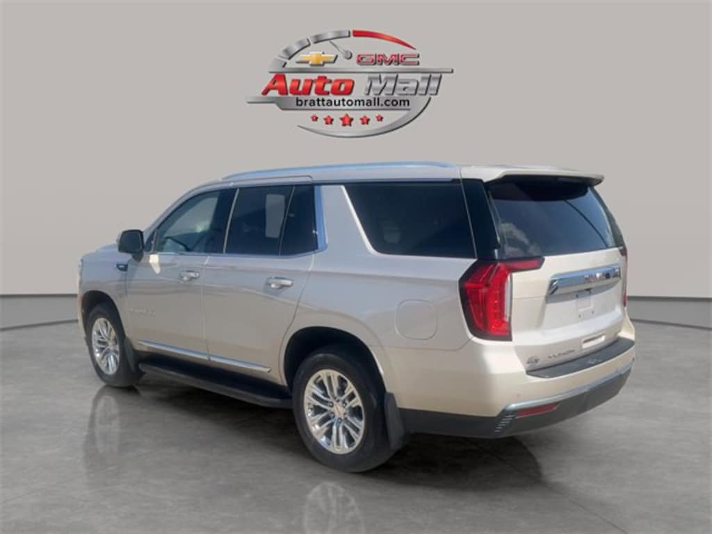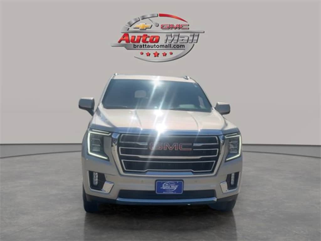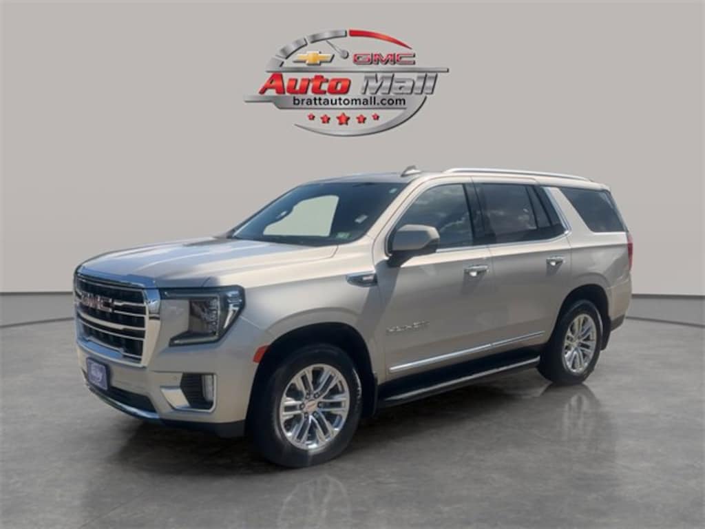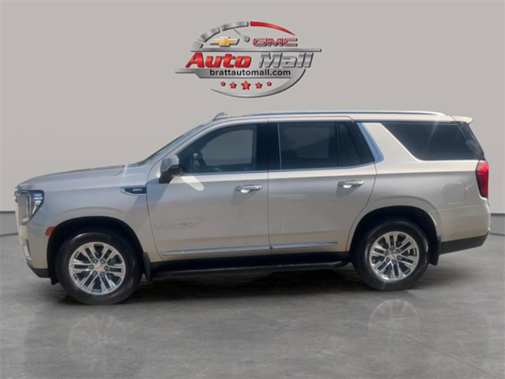 Priced below KBB Fair Purchase Price! This 2021 Pearl Beige Metallic GMC Yukon SLT 4WD is well equipped and includes these features and benefits: License Plate Front Mounting Package, Preferred Equipment Group 4SA (12-Way Power Seat Adjusters, 2 Presets For Power Driver Seat, Bose 9-Speaker Stereo Audio System Feature, Bright Chrome Bodyside Moldings, Bright Front & Rear Door Sill Plates, Chrome Door Handles w/Body-Color Strip, Hands-Free Power Programmable Rear Liftgate, Heated & Ventilated Driver & Front Passenger Seats, Heated Driver & Front Passenger Seats, Inside Rear-View Auto-Dimming Mirror, Safety Alert Seat, and Universal Home Remote), Rear Media & Nav Package (HD Radio, Radio: AM/FM/SiriusXM w/Navigation, Rear Seat Media System, and SiriusXM w/360L), SLT Luxury Package (2 Presets For Outside Rearview Mirrors, 3rd Row 60/40 Power-Folding Split-Bench Seat, HD Surround Vision, Heated 2nd Row Outboard Position Seats, Heated Automatic Steering Wheel, Outside Heated Power-Adjustable Mirrors, Power Release 2nd Row 60/40 Split-Folding Bench Seat, Power Tilt & Telescopic Steering Column, and Rear Pedestrian Alert), SLT Premium Package (Dual-Pane Panoramic Power Sunroof), 4WD, 3.23 Rear Axle Ratio, 3rd row seats: split-bench, 4-Wheel Disc Brakes, 9 Speakers, ABS brakes, Air Conditioning, Alloy wheels, AM/FM radio: SiriusXM with 360L, Apple CarPlay/Android Auto, Auto High-beam Headlights, Auto-dimming Rear-View mirror, Automatic Emergency Braking, Automatic temperature control, Bodyside moldings, Brake assist, Bumpers: body-color, Compass, Delay-off headlights, Driver door bin, Driver vanity mirror, Dual front impact airbags, Dual front side impact airbags, Electronic Stability Control, Emergency communication system: OnStar and GMC connected services capable, Following Distance Indicator, Forward Collision Alert, Four wheel independent suspension, Front & Rear Park Assist, Front anti-roll bar, Front Bucket Seats, Front Center Armrest, Front dual zone A/C, Front fog lights, Front Pedestrian Braking, Front reading lights, Fully automatic headlights, Garage door transmitter, Heated door mirrors, Heated front seats, Illuminated entry, IntelliBeam Automatic High Beam On/Off, Lane Change Alert w/Side Blind Zone Alert, Lane Keep Assist w/Lane Departure Warning, Leather steering wheel, Low tire pressure warning, Memory seat, Not Equipped w/Automatic Stop/Start, Not Equipped w/Steering Column Lock, Occupant sensing airbag, Outside temperature display, Overhead airbag, Overhead console, Panic alarm, Passenger door bin, Passenger vanity mirror, Perforated Leather Seating Surfaces, Power door mirrors, Power driver seat, Power Liftgate, Power passenger seat, Power Release 2nd Row Bucket Seats, Power steering, Power windows, Premium Smooth Ride Suspension, Radio: AM/FM/SiriusXM, Rain sensing wipers, Rear air conditioning, Rear anti-roll bar, Rear Cross Traffic Alert, Rear reading lights, Rear seat center armrest, Rear window defroster, Rear window wiper, Remote keyless entry, Roof rack: rails only, Security system, Speed control, Speed-sensing steering, Split folding rear seat, Spoiler, Steering wheel mounted audio controls, Tachometer, Telescoping steering wheel, Tilt steering wheel, Traction control, Trip computer, Variably intermittent wipers, Ventilated front seats, Voltmeter, and Wheels: 20 x 9 6-Spoke Polished Aluminum. CARFAX One-Owner. Clean CARFAX.
