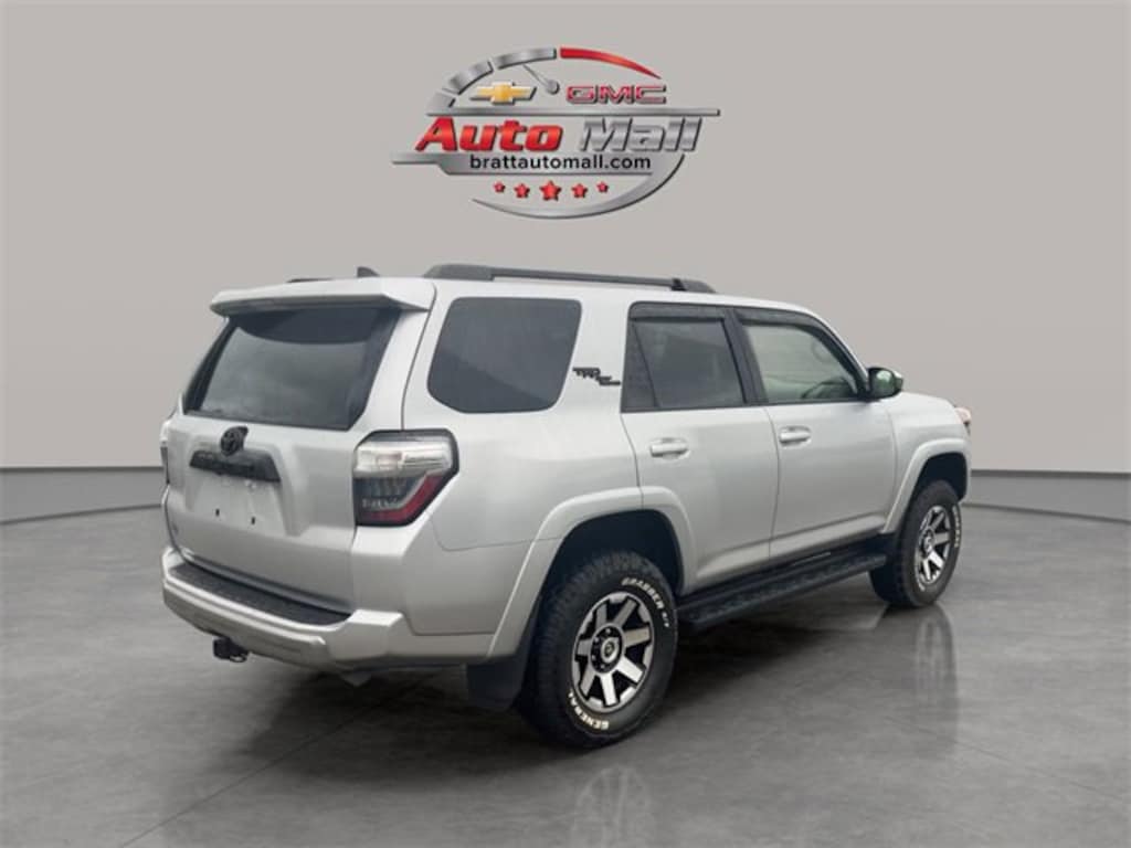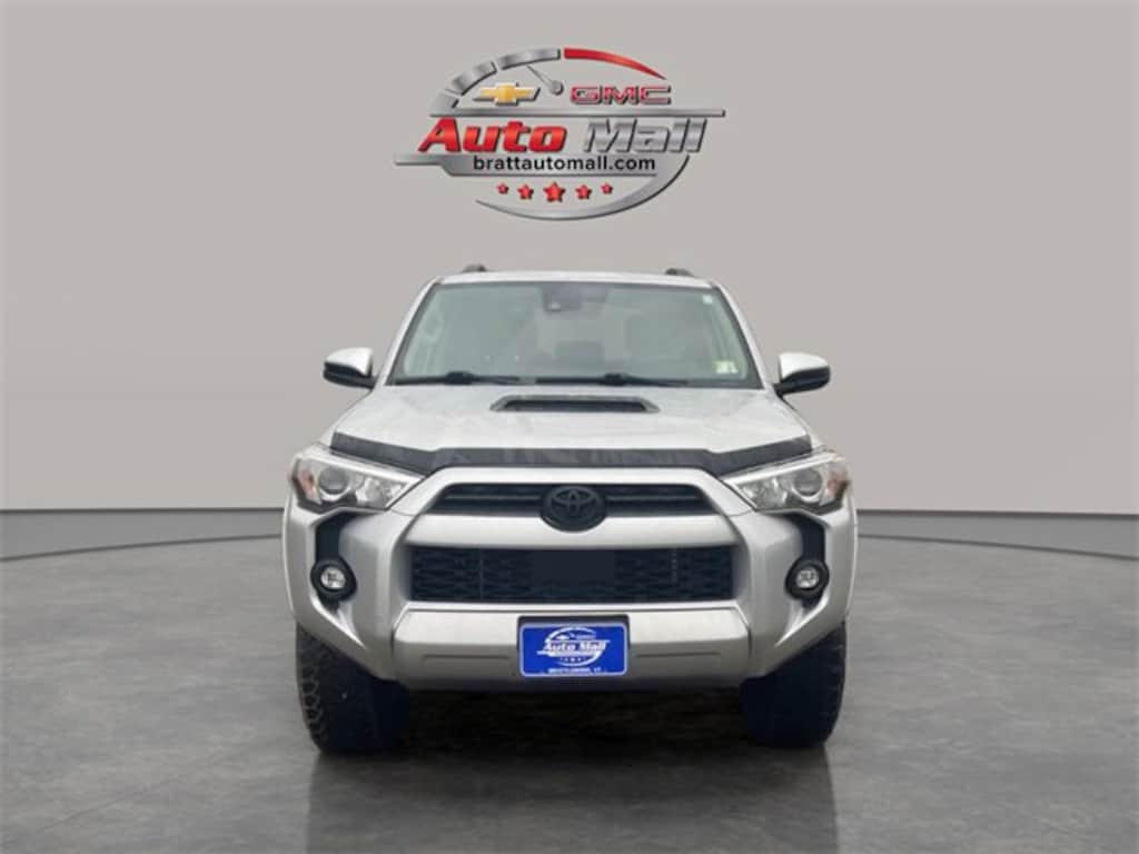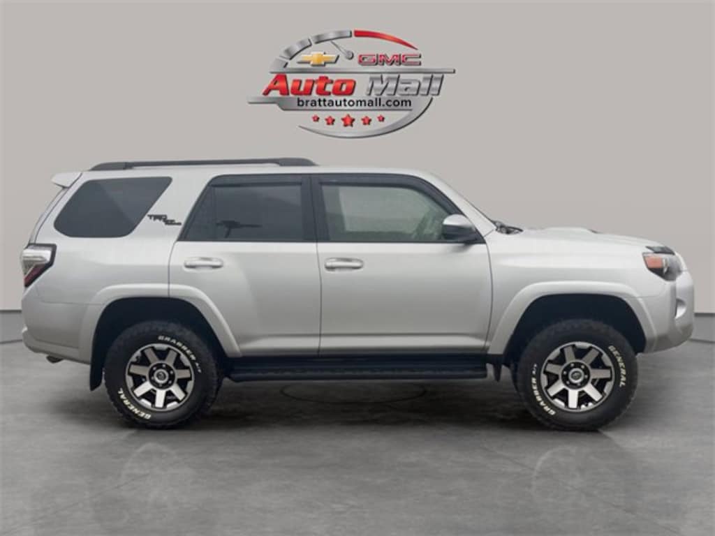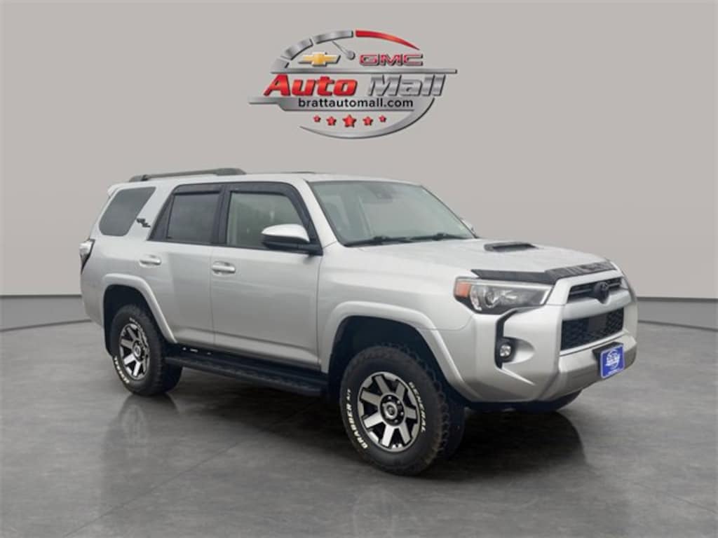 This 2021 Silver Toyota 4Runner TRD Off-Road 4WD is well equipped and includes these features and benefits: 4WD, Cloth, 3.727 Axle Ratio, 4-Wheel Disc Brakes, 8 Speakers, ABS brakes, Air Conditioning, Alloy wheels, AM/FM radio: SiriusXM, Anti-whiplash front head restraints, Apple CarPlay/Android Auto, Auto High-beam Headlights, Black Roof Rails, Brake assist, Bumpers: body-color, Compass, Driver door bin, Driver vanity mirror, Dual front impact airbags, Dual front side impact airbags, Electronic Stability Control, Emergency communication system: Safety Connect with 1-year trial, Exterior Parking Camera Rear, Fabric Seat Trim, Front anti-roll bar, Front Bucket Seats, Front Center Armrest, Front fog lights, Front reading lights, Front wheel independent suspension, Heated door mirrors, Illuminated entry, Knee airbag, Leather Shift Knob, Low tire pressure warning, Occupant sensing airbag, Outside temperature display, Overhead airbag, Overhead console, Panic alarm, Passenger door bin, Passenger vanity mirror, Power door mirrors, Power driver seat, Power steering, Power windows, Radio: Audio Plus, Rear anti-roll bar, Rear seat center armrest, Rear window defroster, Rear window wiper, Remote keyless entry, Roof rack: rails only, Security system, Speed control, Speed-sensing steering, Split folding rear seat, Spoiler, Steering wheel mounted audio controls, Tachometer, Telescoping steering wheel, Tilt steering wheel, Traction control, Trip computer, Variably intermittent wipers, and Wheels: 17 x 7.5 7-Spoke Unique Off-Road Alloy. Clean CARFAX.